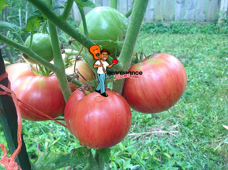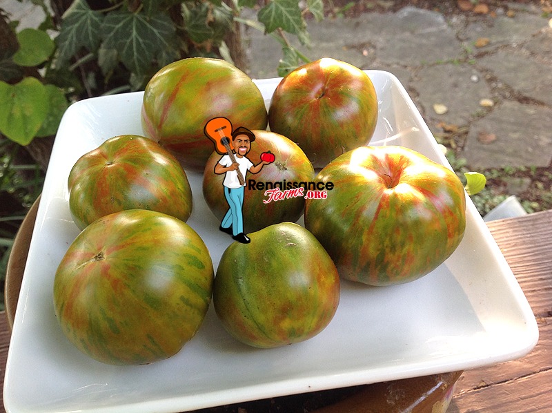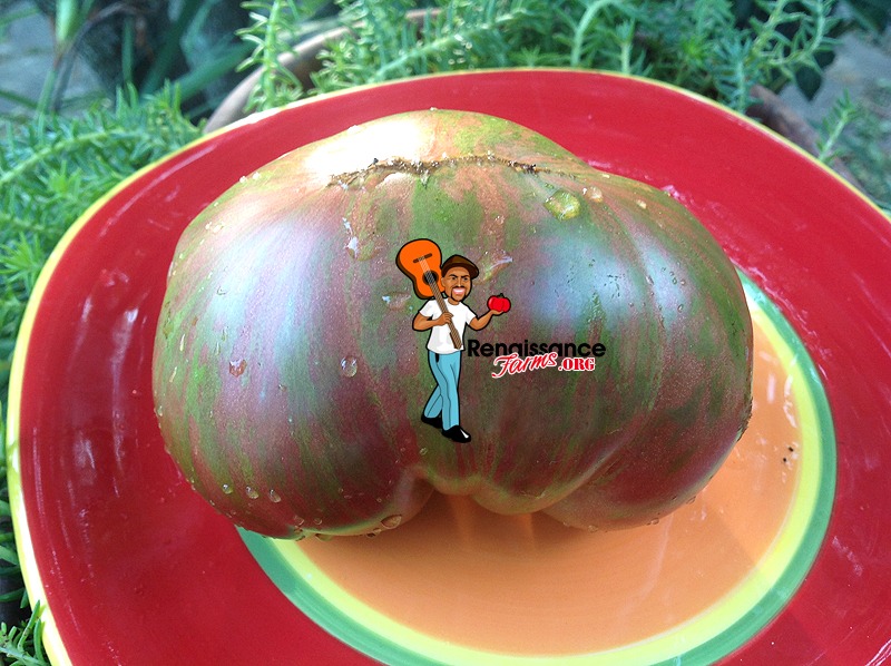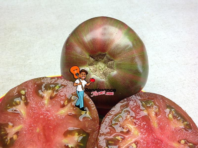 A very dark, bi-colored sort, Dwarf Blackfire packs superb taste. 6-10 ounce fruits have beautiful purple and green stripes. Taste is rich and earthy with nice texture. Don’t let it’s colors fool you, this is one that you should try. Production is good. Plants are hardy too! Container growing, yes!