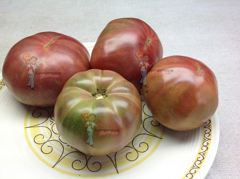 My newest favorite black dwarf variety. Dwarf Purple Reign plants are around 3 feet tall. They produce pretty fruits that are blemish free and aromatic. You MUST try these! I also like that they seem to be early and they produce plenty. As far as taste, I would describe it as old fashioned with some earthiness. Great for slicing and fresh salsa. Try some in the garden too! Yummy!