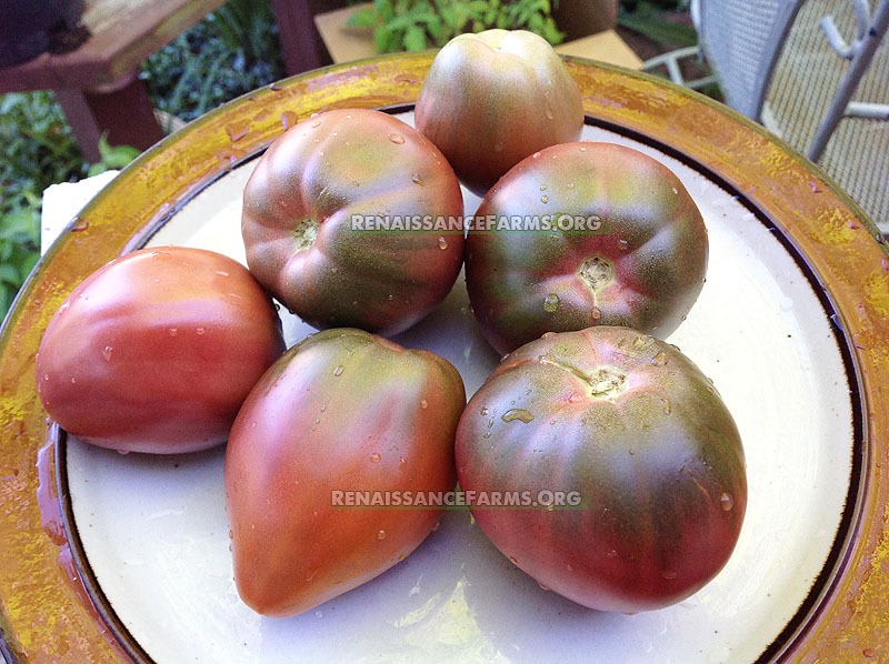I was very impressed when I first tasted Dwarf Purple Heart tomato. I knew then and there that they would always grow here, and we have. There was a big difference between the plants that I grew in the ground and the ones in containers. My container plants grew to about 4 feet while my plants in the ground never crossed 3, if that much. Nonetheless, the fruits remained pretty consistent in taste and size. My ground planted plants produced more, with more intense colors. Fruits are rich, meaty, full-flavored and satisfying. Perfect slicers. Perfect for salsa, snacking and plating. I love these!