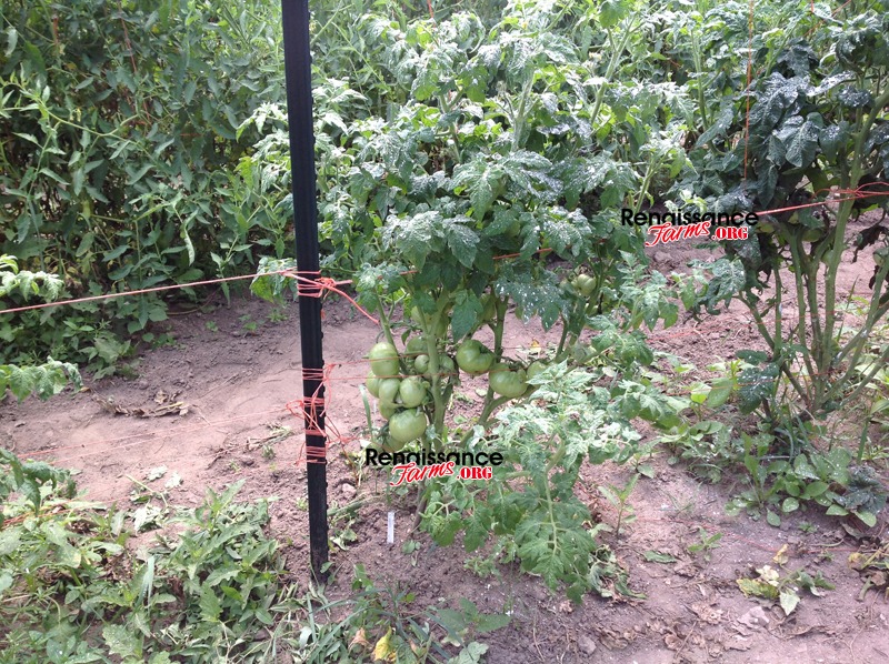 Some excellent gardeners believe that heavily pruning a tomato plant is the best way to go. They cut and pluck, nip and tuck until they are down to just two main stems. Everything below those two stems is cleaned out! It may be their belief and perhaps testimony, that this method produces the best results for them. I believe that there are definite advantages to pruning this way, but I also believe that there are some disadvantages. Heavy pruning certainly encourages maximum air flow and perhaps less diseases, but for someone like me who’s looking for bigger crop size for market sales and extensive seed saving, it’s not the best solution for me.
